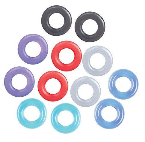 BALLERS DOZENS COCK RINGS includes twelve individually wrapped, super-stretchy TPR rings in a variety of ultra-cool colors.