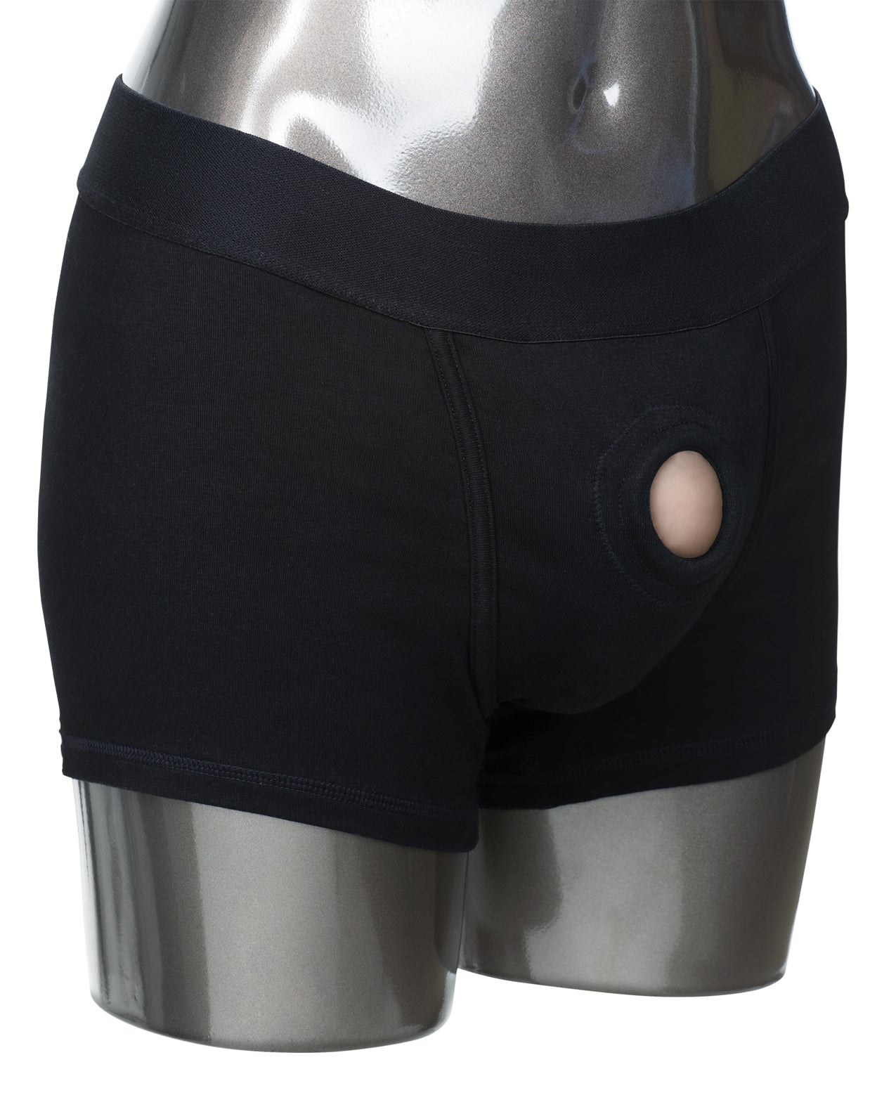 The boxer style harness is made from stretchy and comfortable soft cotton/spandex and has a supportive extra wide waistband. The washable boxer’s soft lining has internal pockets, and an internal strap, to secure your preferred packer in place.