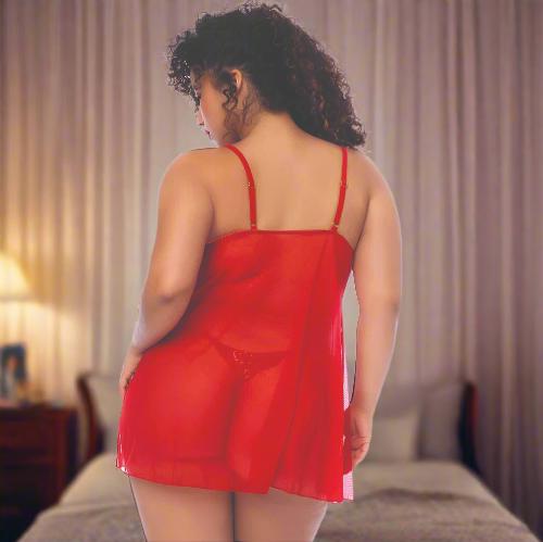 Unveil this stunning SPARKLING RED FLYAWAY BABYDOLL designed to captivate and charm at every angle. Adorned with shimmering sequins and a delicate floral pattern, this piece effortlessly combines elegance with seduction. The transparency adds an irresistible seductive feel.